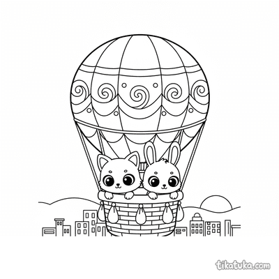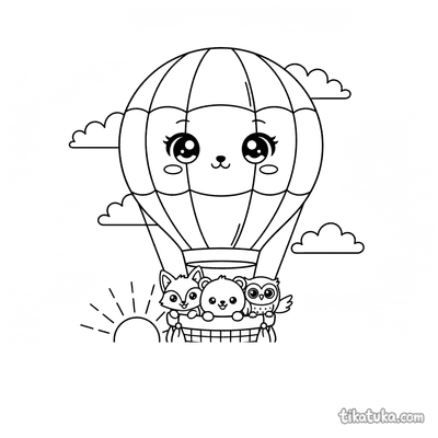 Heißluftballon-Malvorlagen zum Ausdrucken für Kinder