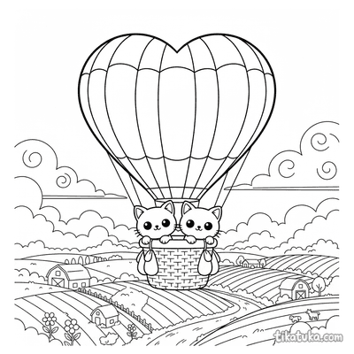 In dieser Sammlung findest du Heißluftballons in Herzform, einfache Ballone in den Wolken und aufwendige Motive wie einen ballonförmigen Hasen oder eine Steampunk-Prinzessin in ihrer Werkstatt. Viele Bilder zeigen die Ballone über bunten Wiesen, einer Tundra oder während eines Picknicks. Die 16 schwarz-weißen Vorlagen mit klaren Konturen eignen sich gut zum Ausdrucken. Du kannst alle Heißluftballon-Bilder einzeln oder als Sammlung herunterladen, um sie später in Ruhe auszumalen.