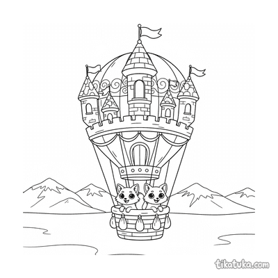 Diese Malvorlagen zeigen Heißluftballons in verschiedenen fantasievollen Szenen. Kinder können die großen Ballone am Himmel und ihre detailreichen Körbe ausmalen.
