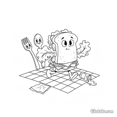Riesiges laufendes Sandwich wird von fröhlichem Besteck verfolgt