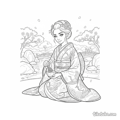Ausmalbilder mit dem Tag "Kimono" für Kinder. Kostenlos herunterladen und ausdrucken.