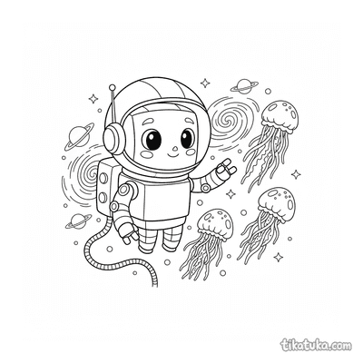 In den Bildern tauchen Astronauten neben Weltraumquallen auf, U-Boote gleiten an leuchtenden Quallenwäldern vorbei und Regenbogen-Quallen treiben im Meer. Auch tierische Charaktere wie ein Waschbär-Astronaut oder ein Husky als Quallenführer sind Teil der abwechslungsreichen Ausmalbilder. Die klaren Schwarz-Weiß-Konturen aller Motive erleichtern Kindern das Ausmalen. Du kannst die gewünschten Quallenbilder direkt herunterladen und ausdrucken, um sofort mit dem Malen zu beginnen.