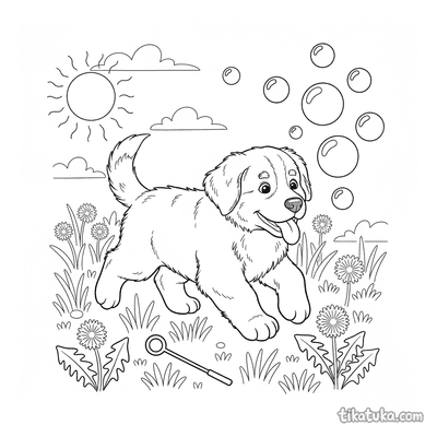 Berner Sennenhund Welpe jagt Seifenblasen