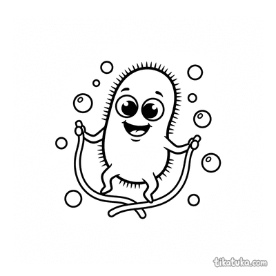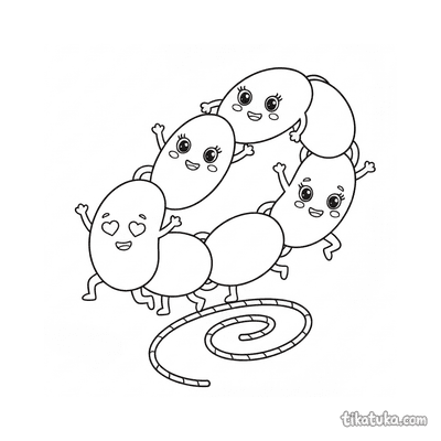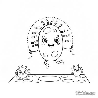 In den Malvorlagen sind niedliche Bakterien mit Geißeln zu sehen, die ein Springseil schwingen, sowie ein Mädchen mit Zöpfen beim Spielen. Auch Ninja-Lehrlinge auf einem Bambus-Parcours, lange Monster mit Lakritz-Seilen und Erbsen in einer Schote, die gemeinsam hüpfen, gehören zu den fantasievollen Motiven. Alle 12 Schwarz-Weiß-Vorlagen sind kostenlos und können direkt heruntergeladen werden. Die klaren Umrisse eignen sich ideal zum Ausdrucken, auch in größerer Stückzahl für die ganze Gruppe oder Klasse, und bieten viel Platz für bunte Farben.