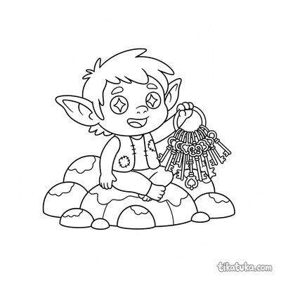 Fröhlicher Schatz-Kobold mit Schlüsselsammlung