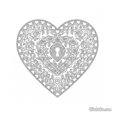 Herz-Mandala mit Blumenranken und Schlüsselloch-Mitte