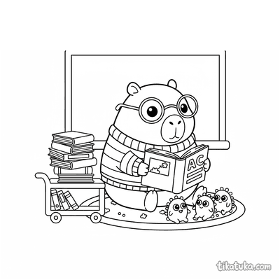 In unserer Sammlung findest du einen Dino-Forscher, der Plüschtieren vorliest, einen Waschbär namens Shmyak zwischen den Regalen und einen kleinen Drachen, der Bücher sortiert. Auch eine Capybara-Bibliothekarin mit einem Bilderbuch oder eine Mikrobe namens Bazillus sind dabei. Jedes Bild erzählt eine kleine Geschichte rund um die Welt der Bücher. Die schwarz-weißen Malvorlagen mit klaren Konturen eignen sich perfekt zum Ausdrucken. Du kannst alle 24 Bibliothekar-Bilder auf einmal herunterladen oder deine Lieblingsmotive einzeln auswählen und sofort mit dem Ausmalen beginnen – ob auf Papier oder direkt am Bildschirm.