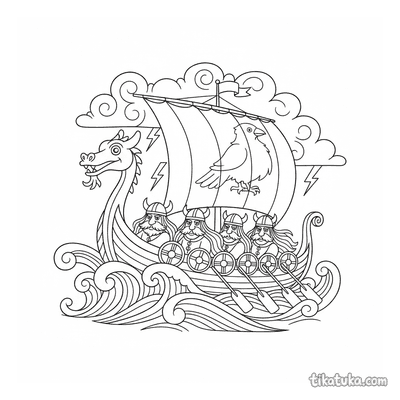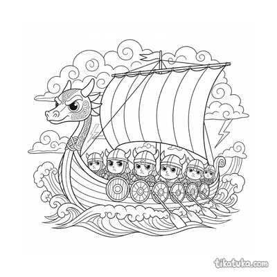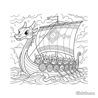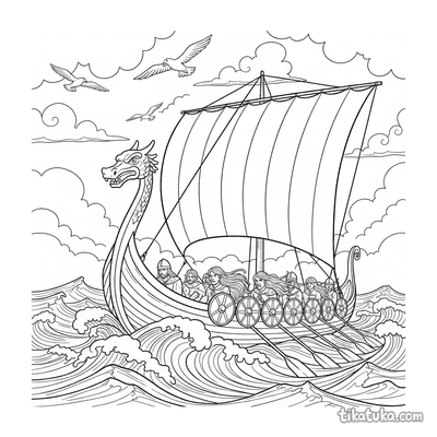 Ausmalbilder mit Wikinger-Langschiffen