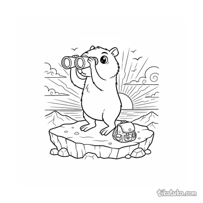 Capybara mit Fernglas an einer Sonnenuntergangs-Aussicht