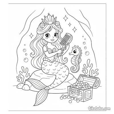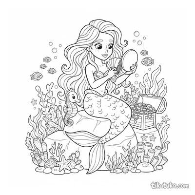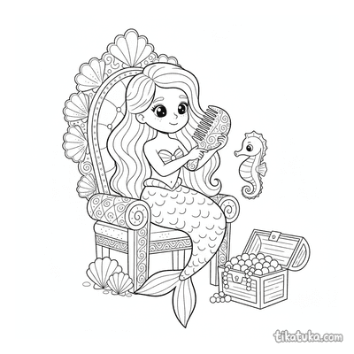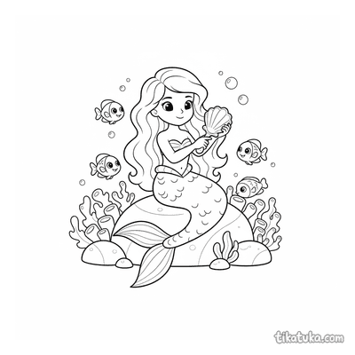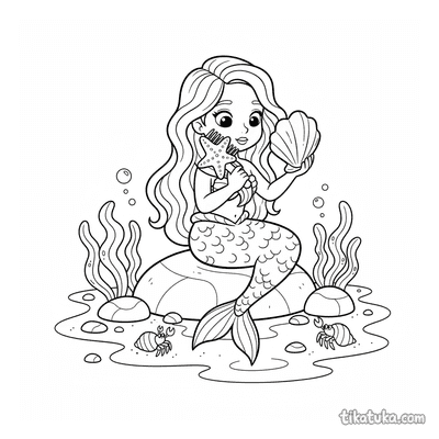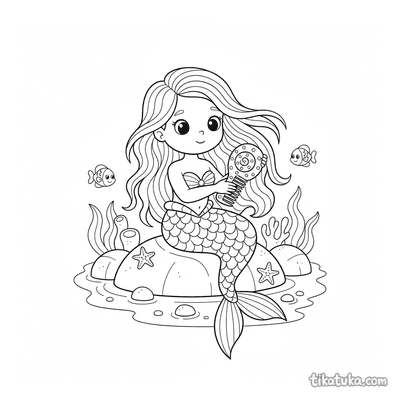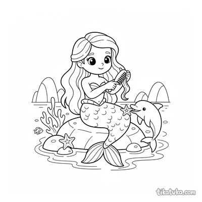 In dieser Sammlung findest du Meerjungfrauen in verschiedenen Szenen: Eine kleine Meerjungfrau lauscht einer Muschel, eine andere kämmt ihr langes Haar auf einem Felsen oder thront auf einem Korallenthron. Auch eine Meerjungfrau-Prinzessin mit einem Delfin oder ein Muschelspiegel in einer Korallenhöhle warten darauf, ausgemalt zu werden. Alle 17 Malvorlagen sind in klaren Schwarz-Weiß-Konturen gehalten, die sich ideal zum Ausmalen eignen. Du kannst die Bilder direkt online ausmalen oder sie bequem als PDF herunterladen, um mehrere Seiten auf einmal auszudrucken.