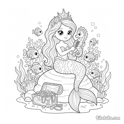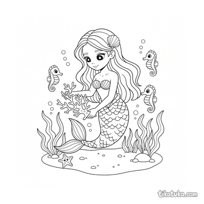 Diese Ausmalbilder zeigen die faszinierende Welt der Meerjungfrauen. Die Motive laden Kinder ein, in die Tiefen des Meeres abzutauchen und ihre eigene Unterwasserwelt zu gestalten.