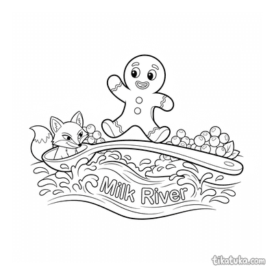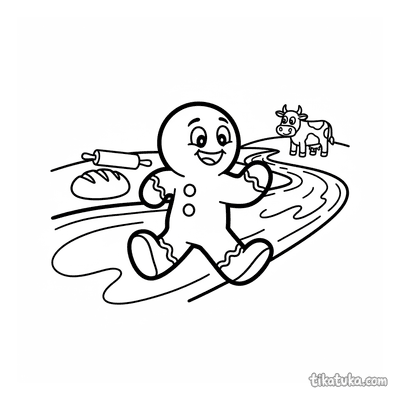 Lebkuchenmann läuft vor einem Milchfluss weg