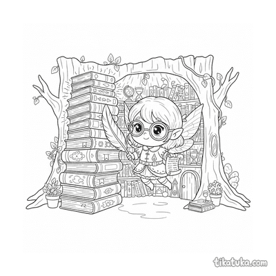Bibliotheks-Pixie sortiert leuchtende Bücher