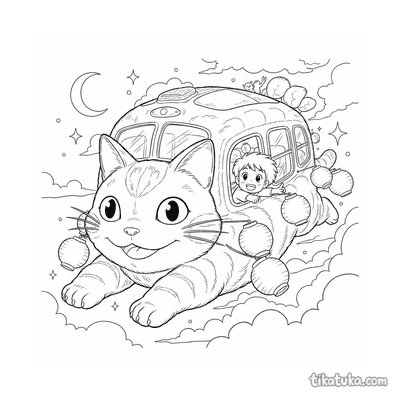 Katzenbus-Geist reitet durch den Nachthimmel