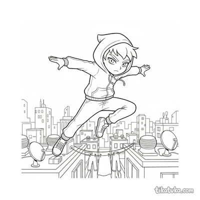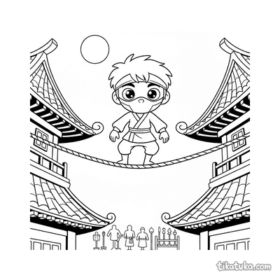 Die Malvorlagen zeigen Ninjas bei ihrer Ausbildung. Sie balancieren auf Seilen zwischen Pagoden, trainieren auf Hindernisparcours im Wald oder ĂŒben das Wandlaufen in der Trainingshalle. Andere Szenen fĂŒhren die Ninjas auf DĂ€cher und Regenrinnen, wo sie ihre Parkour-FĂ€higkeiten unter Beweis stellen. Die klaren Umrisszeichnungen eignen sich perfekt zum Ausdrucken. Du kannst alle 19 Ninja-Bilder auf einmal herunterladen oder direkt auf der Seite mit unseren digitalen Werkzeugen ausmalen.
