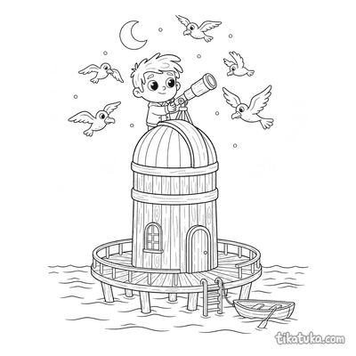 In dieser Sammlung findest du Szenen wie eine schwimmende Meeressternwarte, eine Observatoriums-Terrasse mit einer Prinzessin-Astronomin oder ein futuristisches Raketenauto. Auch detaillierte Plattformen mit Teleskopkuppeln und Himmelskonstellationen laden zum Ausmalen ein. Alle 15 Malvorlagen sind in klaren Schwarz-Weiß-Konturen gehalten, die sich ideal ausdrucken lassen. Du kannst die Bilder einzeln herunterladen oder gleich mehrere Seiten auf einmal für einen kreativen Malnachmittag rund um das Observatorium ausdrucken.