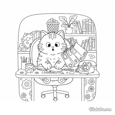 In dieser Sammlung findest du verrückte Roboter, die Zahnräder jonglieren, verwirrte Bürokatzen vor Papierstapeln und junge Erfinder bei der Arbeit. Auch tierische Kollegen wie ein Husky-Mechaniker oder ein Waschbär mit Waffel sind dabei. Die klaren Schwarz-Weiß-Konturen der Motive eignen sich perfekt zum Ausmalen. Du kannst alle 28 Büro-Malvorlagen kostenlos herunterladen und ausdrucken, um sie mit Buntstiften oder Filzern zu gestalten.