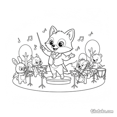 In dieser Sammlung finden sich fantasievolle Szenen wie ein junger Dirigent mit einem KĂŒchenutensilien-Orchester, ein Seepferdchen, das ein Korallenriff-Orchester leitet, oder eine Marschkapelle auf der Parade. Auch tierische Dirigenten wie ein Fuchs, ein Koala oder der WaschbĂ€r Shmyak mit seinem Spielzeugorchester laden zum Ausmalen ein. Die klaren Schwarz-WeiĂ-Konturen der Vorlagen eignen sich perfekt zum Ausdrucken, auch in gröĂerer Menge fĂŒr die ganze Gruppe oder Klasse. So können Kinder die detailreichen Bilder von Orchestern und Musikern ganz einfach herunterladen und nach Herzenslust ausmalen.