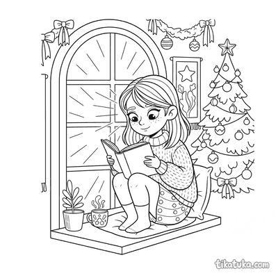 Mädchen liest Buch in Fensternische