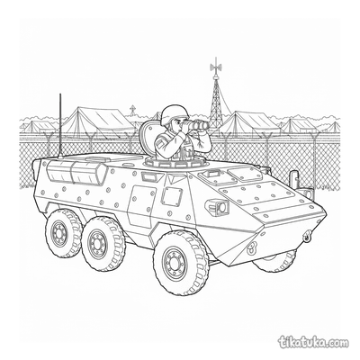 Diese Sammlung zeigt verschiedene Patrouillen-Szenen mit Fahrzeugen im Einsatz. Kinder finden hier detailreiche Schwarz-Weiß-Motive rund um das Thema Überwachung und Kontrolle.