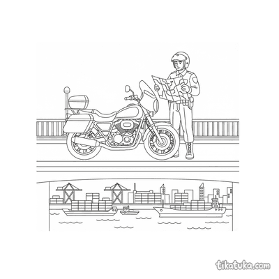 Die Ausmalbilder zeigen konkrete Patrouillen-Einsätze: Ein Vintage-Polizeimotorrad oder ein Hoverbike sind auf Brücken unterwegs, ein Polizeiboot fährt darunter hindurch. Gepanzerte Mannschaftstransportfahrzeuge und leichte Aufklärungsfahrzeuge kontrollieren das Gelände, während ein Funk-Jeep durch das Hauptquartier rollt. Jedes Bild erzählt eine kleine Geschichte von der Routinekontrolle bis zur Perimeterüberwachung. Die 16 Malvorlagen im klaren Schwarz-Weiß-Kontrast eignen sich perfekt zum Ausdrucken. Die klaren Umrisse der Fahrzeuge und Landschaften lassen sich leicht ausmalen, ob mit Buntstiften oder online im Browser. Du kannst alle Bilder einzeln herunterladen oder gleich im praktischen PDF-Paket für einen Malnachmittag voller Action erhalten.