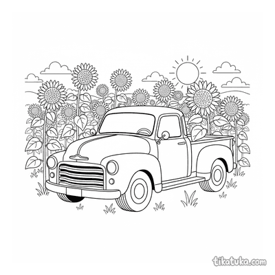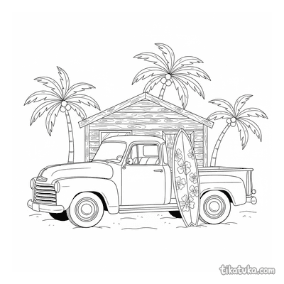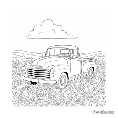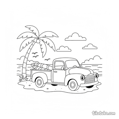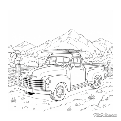 In dieser Sammlung findest du Pickups in actionvollen Momenten: Ein Retro-Pickup parkt in einem Sonnenblumenfeld, ein anderer transportiert Kürbisse oder ein Surfbrett zum Strandhaus. Es gibt auch Szenen am Bergsee, am Aussichtspunkt oder beim gemütlichen Camping. Alle unsere Malvorlagen haben klare schwarz-weiße Konturen, die sich gut ausmalen lassen. Du kannst die Bilder einzeln herunterladen oder alle 16 Pickup-Vorlagen auf einmal als PDF für einen gemütlichen Malnachmittag ausdrucken.