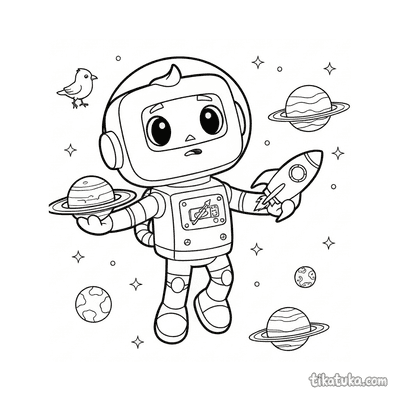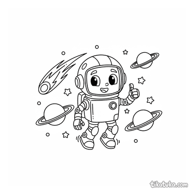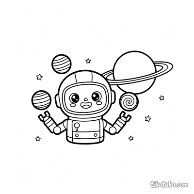In den Malvorlagen erkunden Astronauten-Roboter den Weltraum, schweben unter ringförmigen Planeten oder landen auf dem Mond. Es gibt Retro-Raketen zwischen Sternen, Cartoon-Weltraumwale in Nebeln und Astronauten, die mit Planeten jonglieren. Die klaren Schwarz-Weiß-Vorlagen eignen sich perfekt zum Ausdrucken. Du kannst alle 21 Planetenbilder auf einmal herunterladen oder direkt im Browser online ausmalen, um sofort mit dem kreativen Abenteuer zu beginnen.