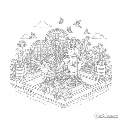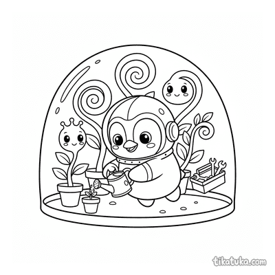 In dieser Sammlung findest du Szenen mit einer kleinen Gärtnerin auf dem Balkon, einem Faultier im Regenwald und einem Alien, der leuchtende Samen pflanzt. Auch ein Axolotl zwischen Unterwasserpflanzen und ein Stegosaurus in einem Farnhain laden zum Ausmalen ein. Die 29 Malvorlagen stehen als klare Schwarz-Weiß-Vorlagen zum Herunterladen bereit. Du kannst alle Bilder einzeln ausdrucken oder die gesamte Sammlung auf einmal für einen langen Malnachmittag nutzen.
