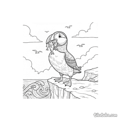 Papageitaucher sind faszinierende Seevögel mit ihrem markanten bunten Schnabel. Diese Malvorlagen zeigen die Vögel in ihrem natürlichen Lebensraum an den Klippen und über dem Meer. Kinder können die verschiedenen Szenen mit den charakteristischen Vögeln entdecken und gestalten.
