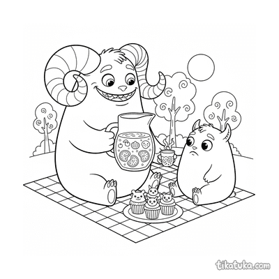 Monster mit Lockigen Hörnern Teilt Fruchtpunsch