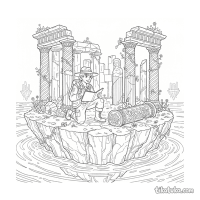 In den Bildern erwachen die Ruinen zum Leben: Ein Uhrwerk-Eulenwächter hält auf einem Steinbogen Wache, während eine Flussnymphe an einer zerstörten Brücke ruht. Kinder treffen auf ein Orakel in einem Amphitheater, auf eine junge Heldin auf einem Pegasus oder auf einen schlafenden Wächter zwischen alten Ranken. Die klaren Schwarz-Weiß-Konturen der Malvorlagen sind ideal, um die Details der steinernen Architektur und der fantasievollen Figuren auszumalen. Alle 20 Bilder lassen sich einfach herunterladen und in guter Qualität ausdrucken – perfekt für einen kreativen Nachmittag oder zum Gestalten einer eigenen Geschichte.