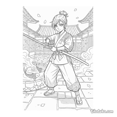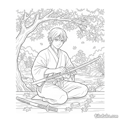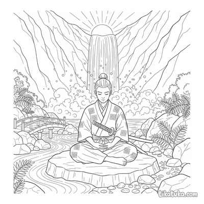 Die Samurai-Malvorlagen stellen verschiedene Szenen aus dem Leben eines Lehrlings dar. Du findest Bilder, auf denen der Samurai-Lehrling sein Katana poliert, Iaijutsu oder Iaido im Hof übt oder in der Natur meditiert – sei es an einer Klippe, unter einem Ahornbaum oder bei einem Wasserfall im Bambushain. Die klaren Schwarz-Weiß-Konturen der Samurai-Bilder eignen sich perfekt zum Ausmalen. Du kannst alle 11 Motive einfach herunterladen und in guter Qualität ausdrucken, um sofort mit dem Gestalten zu beginnen.