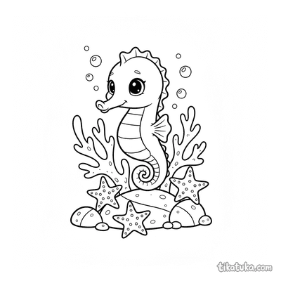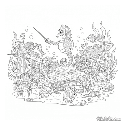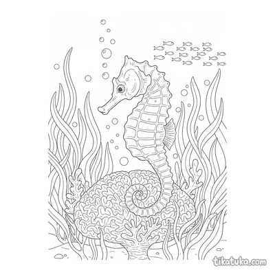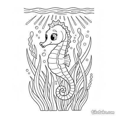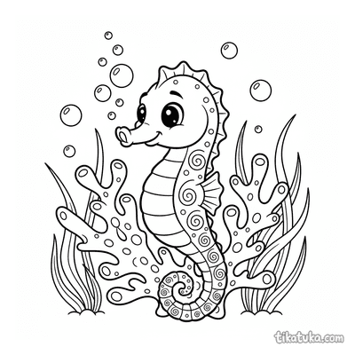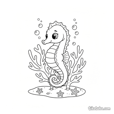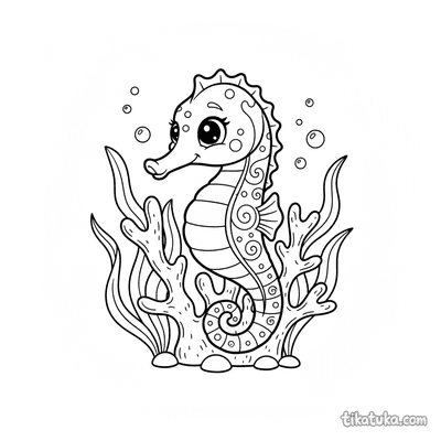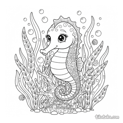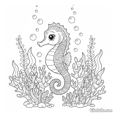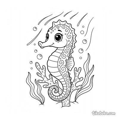 In dieser Sammlung findest du Seepferdchen, die sich elegant um Korallen schlingen, durch TangwĂ€lder schwimmen oder in sonnendurchfluteten GewĂ€ssern zu sehen sind. Einige Bilder zeigen die Tiere in fantasievollen Szenarien, wie ein Seepferdchen, das ein Korallenriff-Orchester dirigiert. Alle 43 Malvorlagen sind in klaren Schwarz-WeiĂ-Konturen gehalten, die sich leicht ausdrucken lassen. Du kannst die Bilder direkt herunterladen oder sie bequem online mit unseren digitalen Werkzeugen ausmalen.