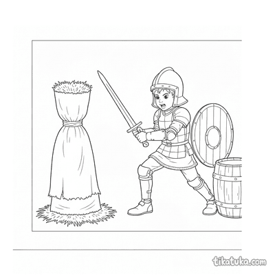 In dieser Sammlung findest du junge Ritter, die mit Holzschwertern ĂŒben, am Burgtor Wache stehen oder ihre FĂ€higkeiten an einer Strohpuppe trainieren. Ein Ritter streichelt sogar ein Drachenjunges, und andere halten stolz ihre Flaggen oder bewachen die ZugbrĂŒcke. Alle Szenen sind mit klaren, schwarz-weiĂen Konturen gestaltet, die sich leicht ausmalen lassen. Du kannst dir alle 48 Schild-Malvorlagen kostenlos herunterladen und ausdrucken. Ob fĂŒr ein einzelnes Bild oder ein ganzes Ritter-Projekt mit vielen Seiten â die Malvorlagen eignen sich ideal zum Ausdrucken und Gestalten deiner eigenen Abenteuergeschichte.