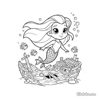 Meerjungfrauenprinzessin erkundet Schiffswrack