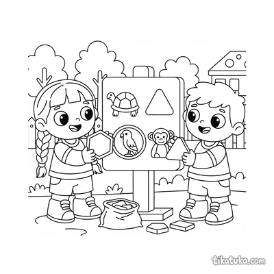 Kinder passen Formen an Tier-Silhouetten auf Schild an