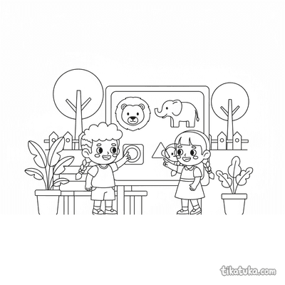 Kinder passen Formen zu Tiersilhouetten am Zoobrett an