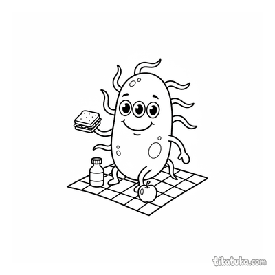 Bakterium mit Wackelaugen beim Picknick