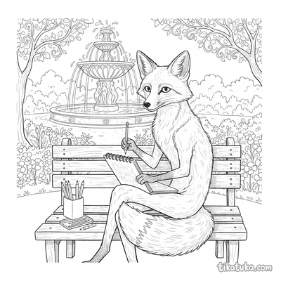 Fuchs zeichnet auf Bank