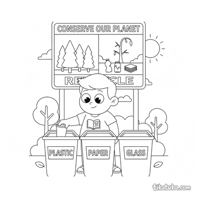 Schüler Sortiert Recycling-Behälter am Zoo-Naturschutzschild