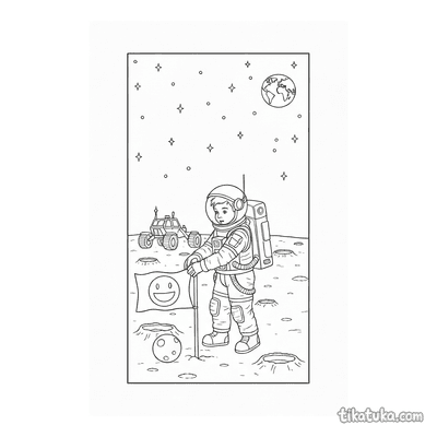 In dieser Sammlung gibt es Astronauten, die Flaggen auf dem Mond oder einem Asteroiden pflanzen, Mondgestein untersuchen oder einen Weltraumspaziergang machen. Auch tierische Astronauten wie ein Husky, eine Eule oder ein Pinguin sind in ihren Raumanzügen unterwegs, und ein Alien wartet auf einem Asteroiden. Die klaren Schwarz-Weiß-Konturen der Raumanzug-Motive eignen sich gut zum Ausdrucken. Du kannst alle 14 Bilder auf einmal herunterladen oder direkt im Browser online ausmalen, um sofort loszulegen.