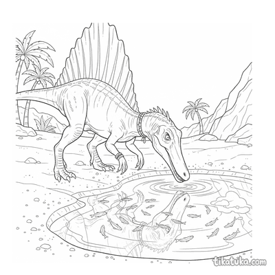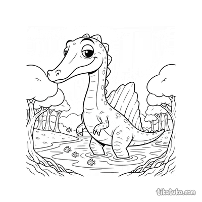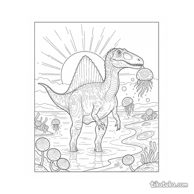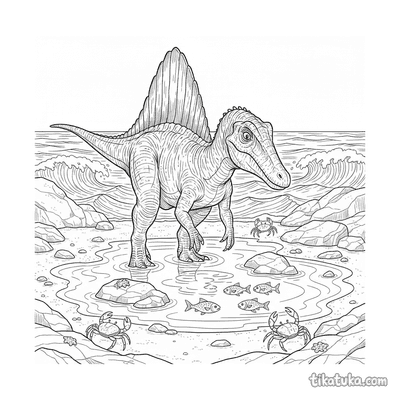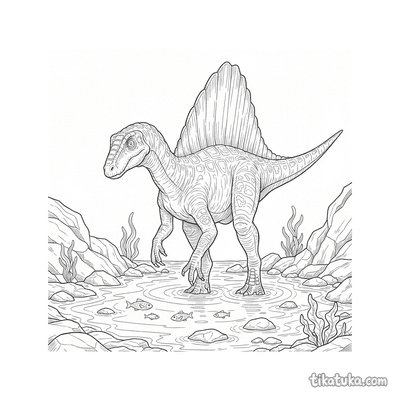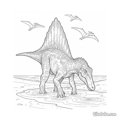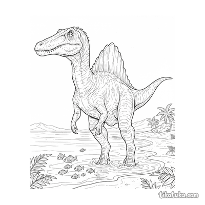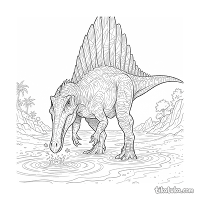 Der Spinosaurus war ein beeindruckender Dinosaurier, der vor allem in und am Wasser lebte. Diese Ausmalbilder zeigen den riesigen Fleischfresser in seinem natürlichen Lebensraum.