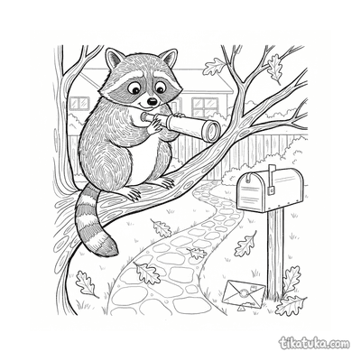 Besorgter Waschbär mit Fernrohr im Baum