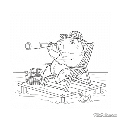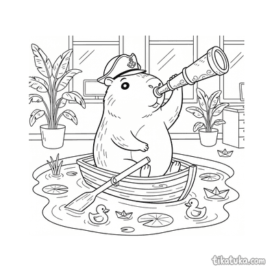 Dramatisches Capybara im Ruderboot mit Fernrohr