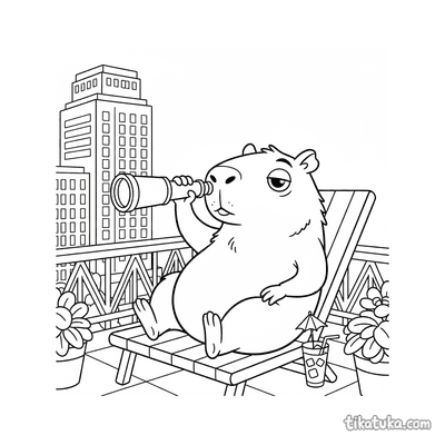 Dramatisches Capybara auf dem Balkon mit Fernrohr