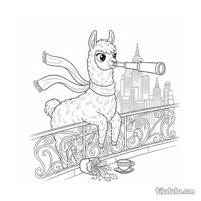Dramatisches Lama mit Fernrohr auf Balkon