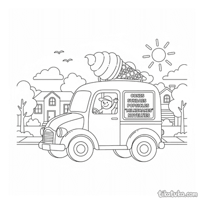 Zu den Motiven gehören ein nostalgisches Eiscreme-Dreirad, ein Gelenkbus in der Kurve und eine alte Dampfwalze auf Kopfsteinpflaster. Auch ein dampfbetriebener Roboter, der Zeitungen liefert, ein blumengeschmückter Lieferwagen und ein Pick-up voller Kürbisse laden zum Ausmalen ein. Die klaren Schwarz-Weiß-Konturen aller 28 Vorlagen erleichtern das Ausmalen. Du kannst die gewünschten Motive direkt ausdrucken oder für später herunterladen, um sie jederzeit mit Buntstiften oder Filzern zu gestalten.