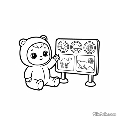 Baby Lernt Wettersymbole neben Tierklima-Schild