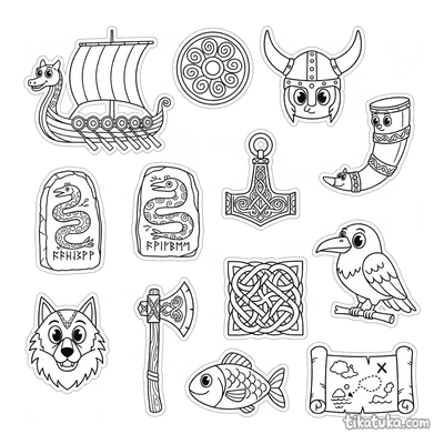 Aufkleberblatt: Wikingerschiff und nordische Symbole
