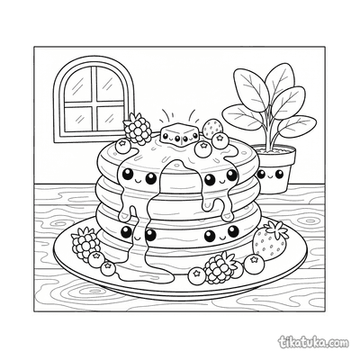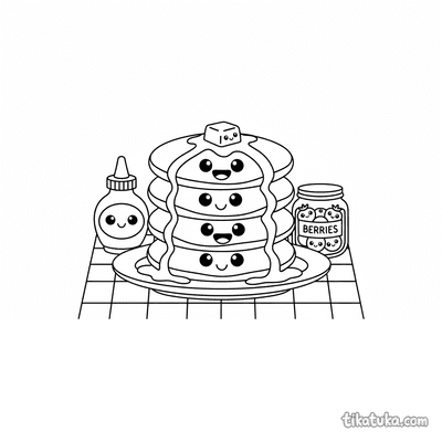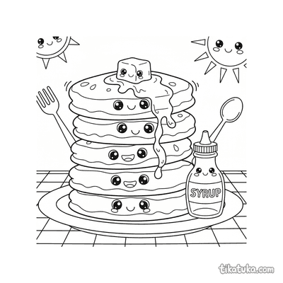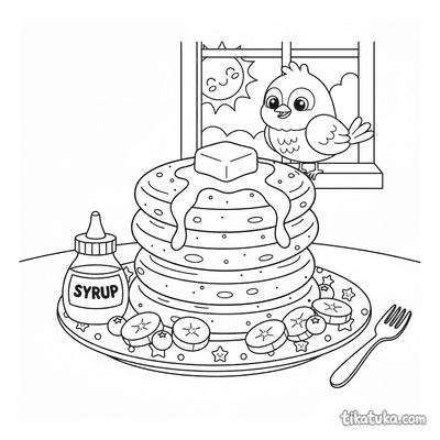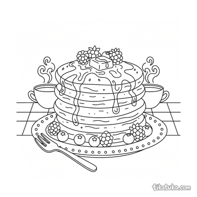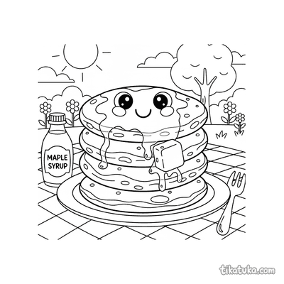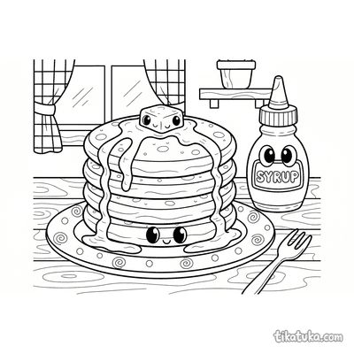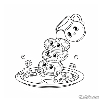 Die Ausmalbilder zeigen typische Sirup-Momente, wie zum Beispiel einen hohen Stapel fluffiger Pfannkuchen, über den goldener Sirup läuft. Oft sind auch frische Beeren oder ein Stückchen Butter dabei, was die süßen Szenen komplettiert. Du kannst alle 15 Sirup-Malvorlagen kostenlos herunterladen und in guter Qualität ausdrucken. Die klaren Schwarz-Weiß-Konturen sind ideal für Kinder, um die leckeren Details mit Buntstiften oder Filzern auszumalen.